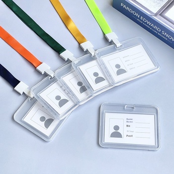 Tarjetero con cordón al por mayor tarjetero de plástico transparente de doble cara para tarjetas de trabajo